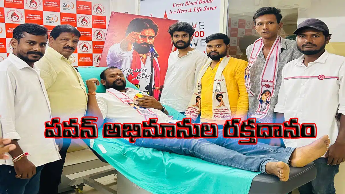 Fans Blood Donation: ఆర్మూర్ టౌన్, సెప్టెంబర్ 02 (ప్రజా శంఖారావం): ఆంధ్రప్రదేశ్ ఉప ముఖ్యమంత్రి కొణిదెల పవన్ కళ్యాణ్ పుట్టినరోజు సందర్భంగా సోమవారం నిజామాబాద్ జిల్లా ఆర్మూర్ పట్టణ కేంద్రంలోని ఆయన అభిమానులు ఘనంగా పుట్టినరోజు వేడుకలను నిర్వహించారు. ఈ సందర్భంగా కేక్ కట్ చేశారు. ఉప ముఖ్యమంత్రి పవన్ కళ్యాణ్ పుట్టినరోజు పురస్కరించుకొని ఆయన అభిమానులు రక్తదాన చేశారు. ఈ కార్యక్రమంలో జనసేన పార్టీ ఆర్మూర్ నియోజకవర్గ ఇన్చార్జి ఆరే ప్రవీణ్ కుమార్, కార్యకర్తలు ఆవుల వెంకటనారాయణ, వెంకటేశ్వర్లు, వినయ్ తదితరులు పాల్గొన్నారు.