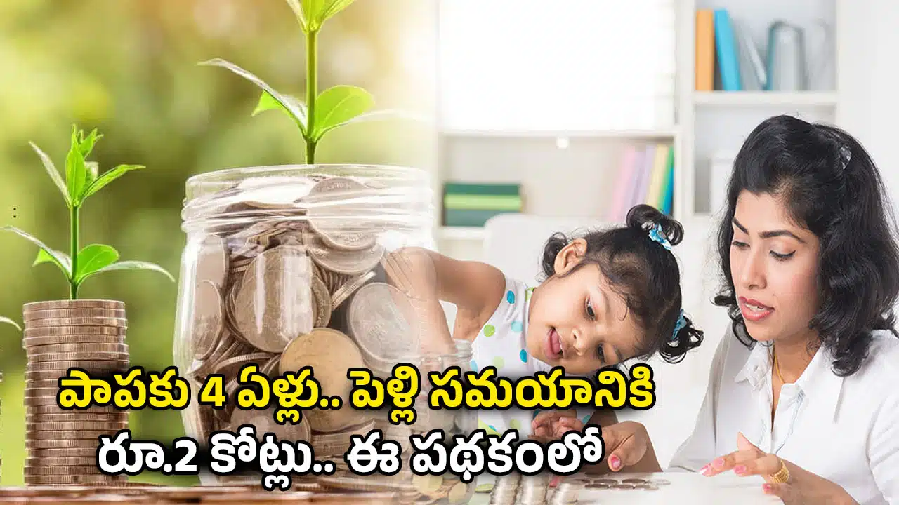 SAVING PLAN: పిల్లల ఉన్నత చదువులు మరియు పెళ్లిళ్లకు భవిష్యత్తులో చాలా మతంలో డబ్బులు అవసరం అవుతాయి. పిల్లలు చిన్నగా ఉన్న సమయం నుంచే పొదుపు చేయడం ప్రారంభిస్తే వాళ్ళు ఉన్నత చదువులు చదువుతున్నప్పుడు లేదా వాళ్ల పెళ్లికి చేతికి డబ్బులు అందుతాయి. అయితే నాలుగేళ్ల పాప పేరుపై ఎంత మొత్తంలో ఇన్వెస్ట్ చేస్తే ఆమె పెళ్లి సమయానికి రెండు కోట్ల రూపాయలు చేతికి అందుతాయో నిపుణులు ఏం చెప్తున్నారు ఇప్పుడు తెలుసుకుందాం.. తమ పిల్లల మంచి భవిష్యత్తు కోసం తల్లిదండ్రులు రూపాయి రూపాయి కూడా పెట్టి పొదుపు చేసి పెట్టుబడులు పెడుతూ ఉంటారు. ప్రస్తుతం ఉన్న రోజుల్లో పిల్లలు ఉన్నత చదువులు చదువుకోవడానికి లేదా వాళ్ల పెళ్లిళ్లకు లక్షల్లో ఖర్చు చేయాల్సి వస్తుంది. రానున్న రోజుల్లో ఈ ఖర్చులు మరింత పెరుగుతాయి.